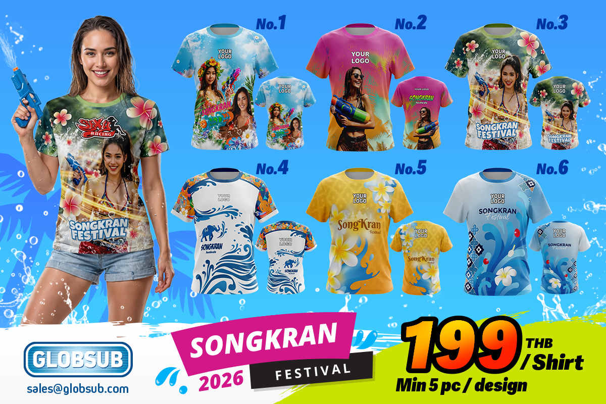 To make festival preparation fast and simple, we offer a collection of ready-made Songkran shirt designs that are already created with a strong festive look and vibrant colors.